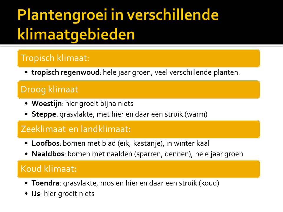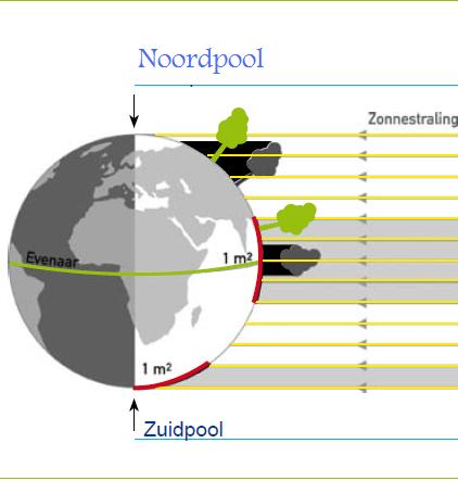 Hoe dichter je bij de evenaar zit, hoe warmer het is. Hoe verder je van de evenaar af zit, hoe kouder het wordt.