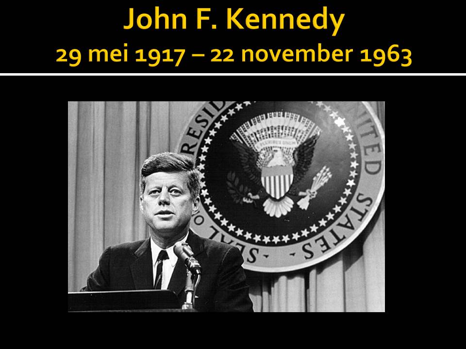 In 1960 werd John F. Kennedy gekozen als 35e president van de Verenigde Staten. Hij was de jongst gekozen president ooit. Lang heeft hij echter geen president kunnen zijn. Toen hij op 22 november 1963 in Dallas was voor zijn campagne voor de verkiezingen van 1964, werd hij doodgeschoten. In deze tijd was er veel minder beveiliging dan dat we nu hebben. John F. Kennedy zat op het moment dat hij werd doodgeschoten in een open limousine. Nu zou dat ondenkbaar zijn, een president wordt tegenwoordig beschermd door bodyguards, kogelvrije vesten en kogelwerende ramen in de auto.