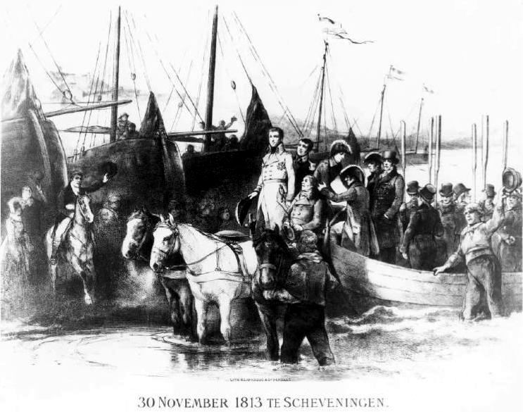 Op 30 november 2013 is het precies 200 jaar geleden dat Willem Frederik (later Koning Willem 1) aan kwam op het strand in Scheveningen. Zijn vader was stadhouder Willem V, hij was in 1795 tijdens de Bataafse Revolutie (zie artikel: Franse Revolutie) gevlucht naar Engeland. In die periode hadden de Fransen de macht. Nadat Napoleon in Leipzig in 1813 verloren had, moest er een nieuw bestuur komen.De oude stadhouder Willem V was al overleden, daarom werd zijn zoon Willem Frederik gevraagd terug te komen naar Nederland.