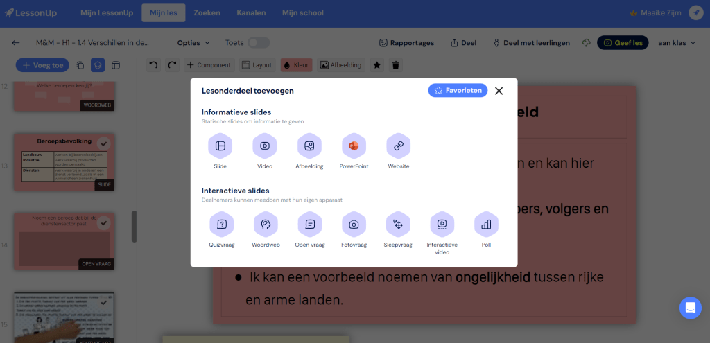 In LessonUp is het heel makkelijk om een Exit Ticket toe te voegen aan je les. Je kunt een lesonderdeel toevoegen en dan kiezen voor ‘interactieve slide’.
