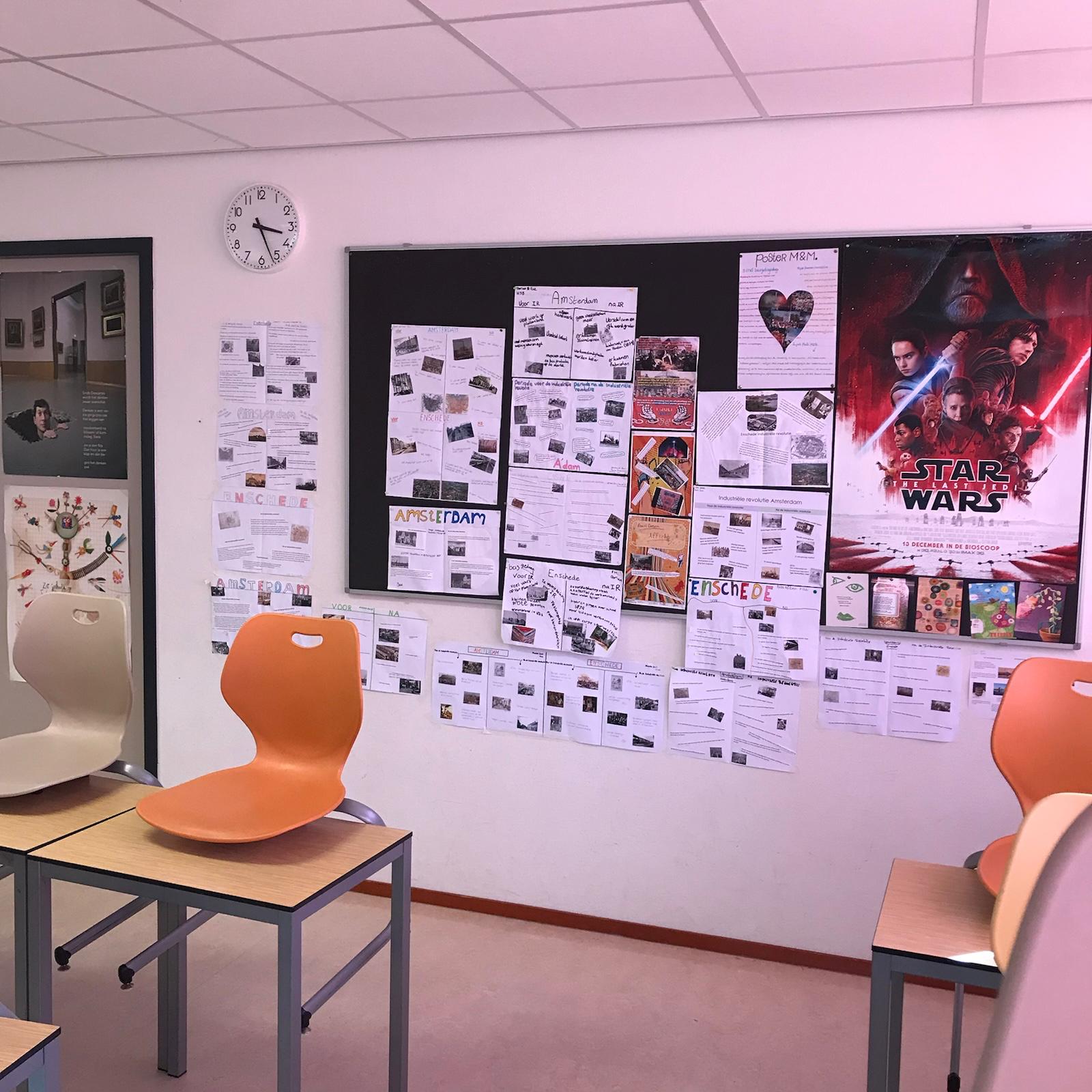 - Of je echt richten op je vak. Bij geschiedenis is het helemaal niet zo raar om bijvoorbeeld een tijdlijn aan de muur te hebben.